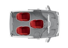 La mia est disponible en version longue de 3,19 mètres. Parfaite pour les familles, la mia L peut accueillir quatre passagers. Le conducteur est en position centrale et les trois passagers arrière disposent d'une banquette généreuse avec des fixations ISOFIX pour installer un ou plusieurs sièges enfants. Avec 420 litres, le volume utile du coffre équivaut à celui de voitures compactes bien plus grandes !